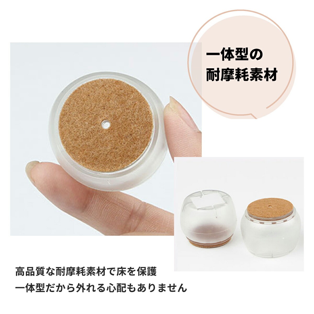 床傷防止・防音の耐摩耗素材フェルト一体型!シールのように貼り付けないから、ズレない、取れない、脱げにくい足カバー