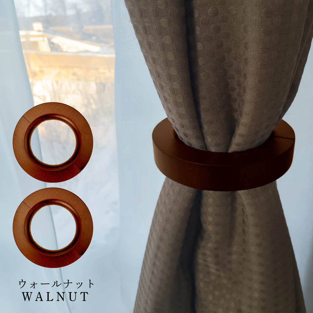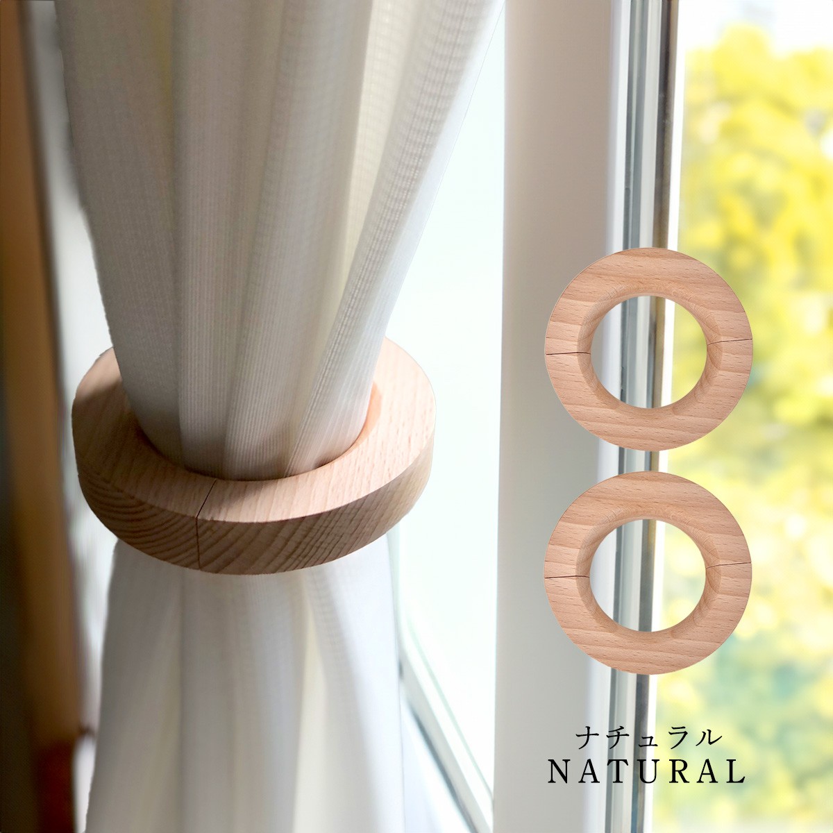 カーテンタッセル マグネット 強力マグネット 木製 ウッド おしゃれ カーテン タッセル フック なし かわいい 木 カーテンホルダー マグネ クリップ 2個 セット