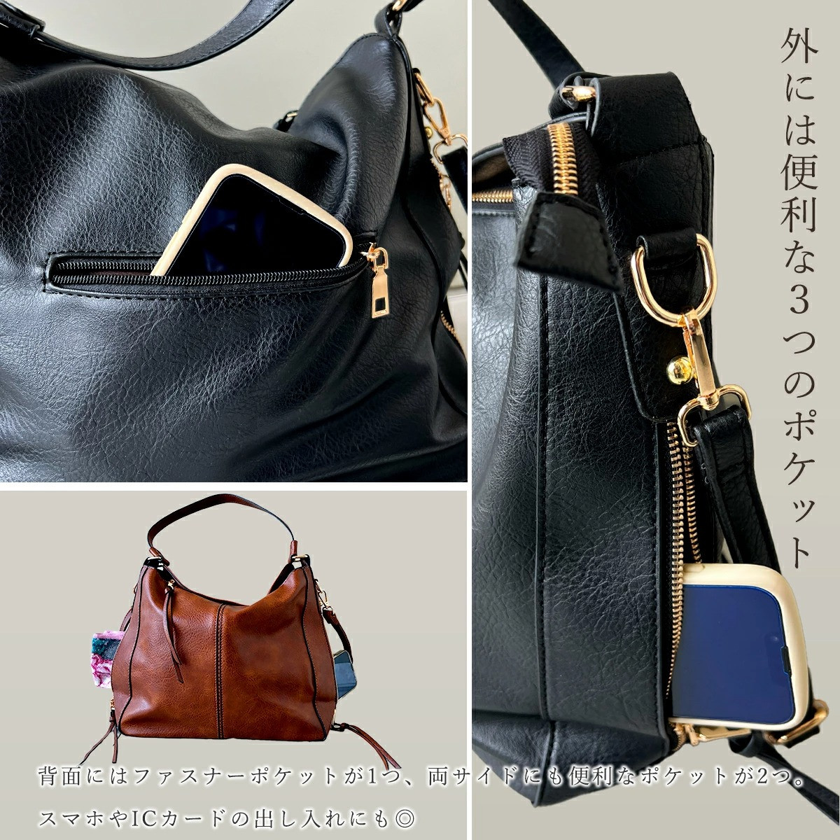 ショルダーバック・ハンドバッグ・ショルダートートと使い方自在の3way仕様です。