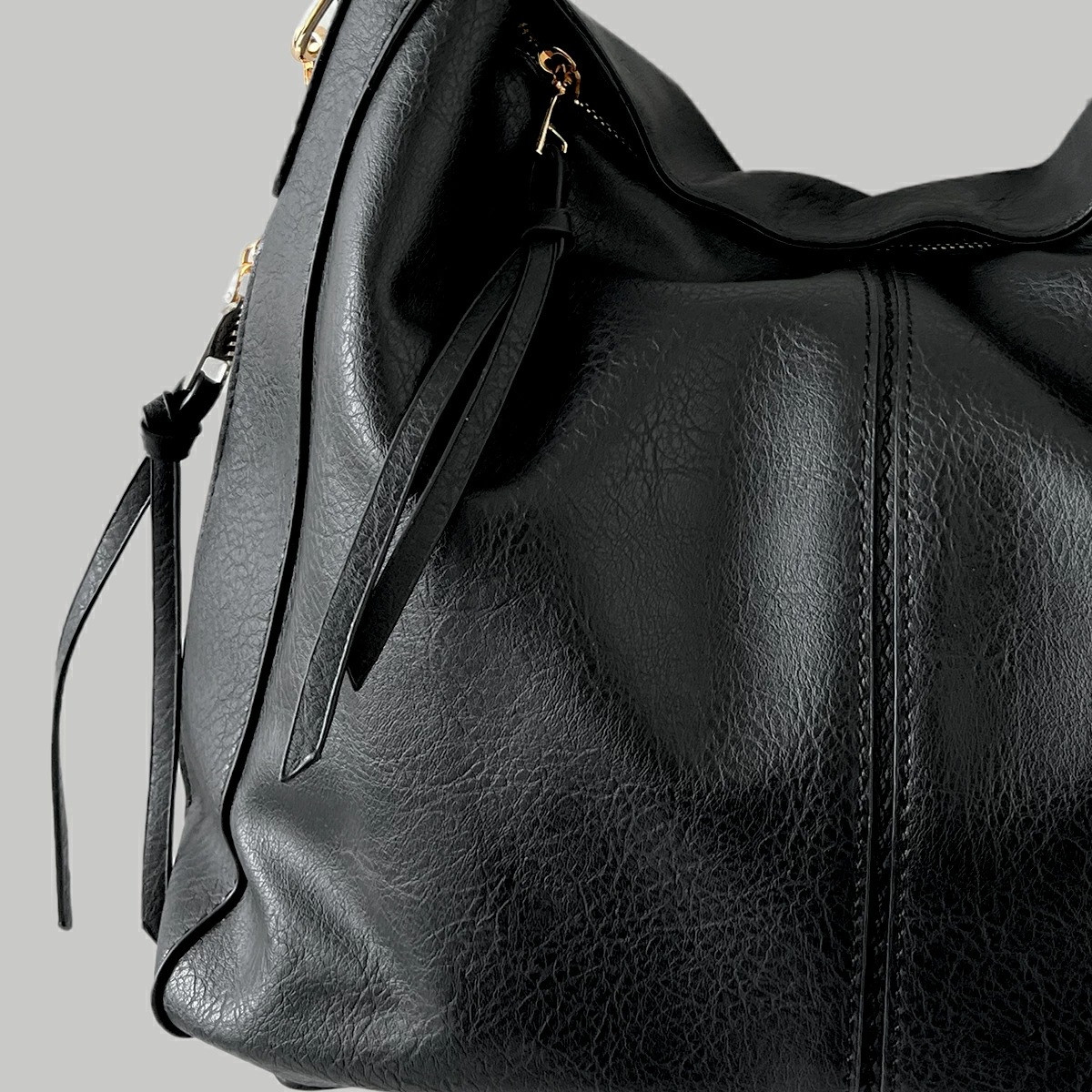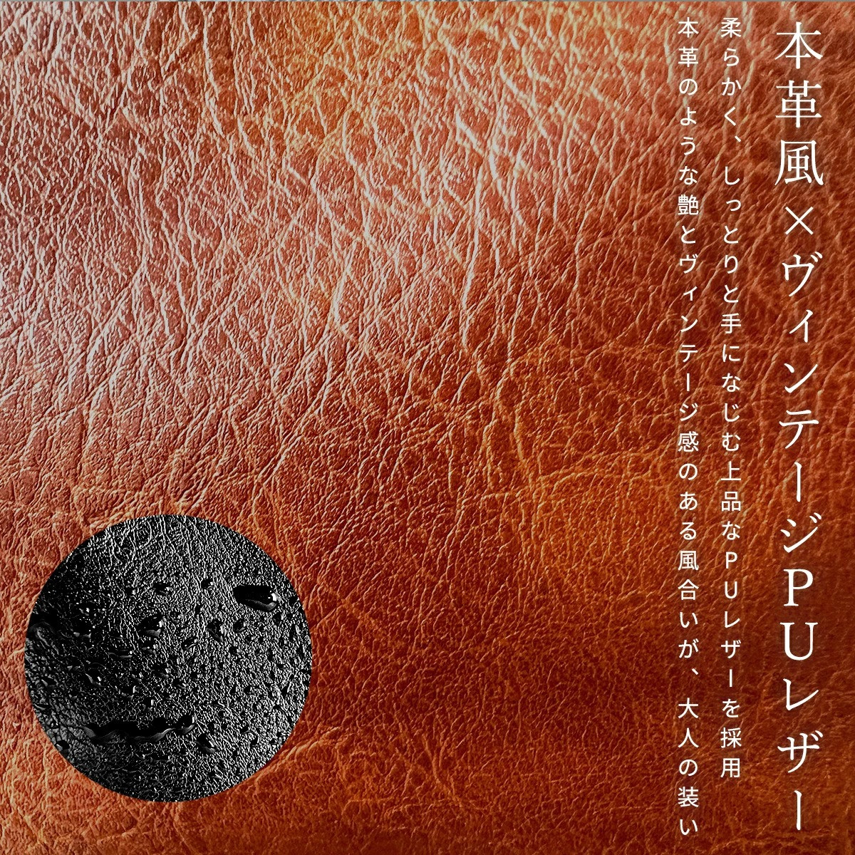ヴィンテージ風に加工されたフェイクレザーは、まるで本革のような質感で、コーデにこなれ感をプラスします。
