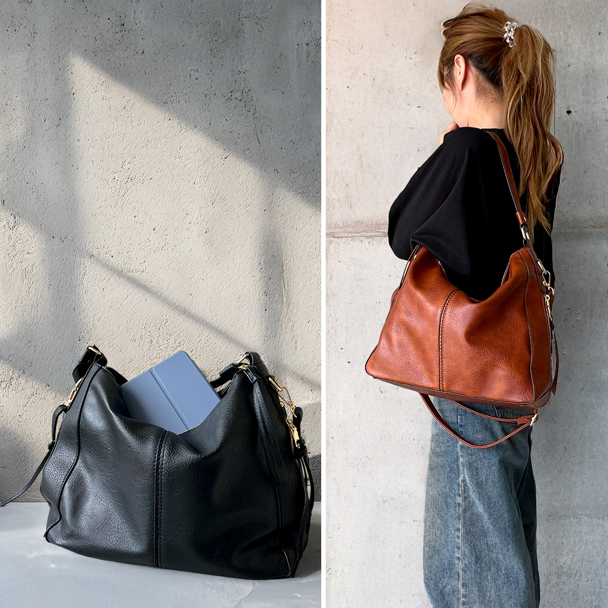 600gと革に比べて軽量で肩が疲れにくく、肩掛けでも斜めがけバッグとしても快適。