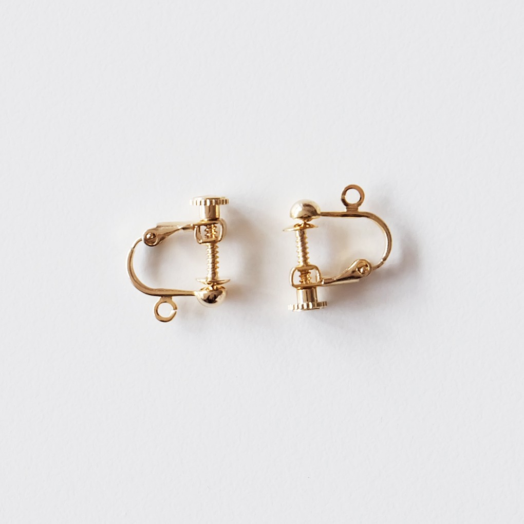 真鍮製ネジで微調整ができるバネ式のイヤリングです。