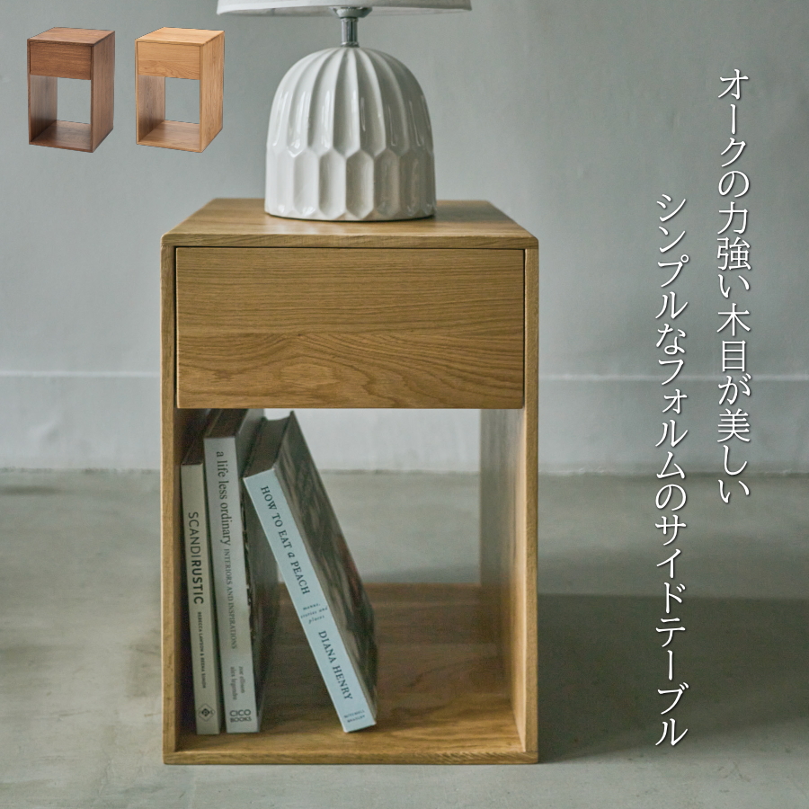 サイドテーブル サイドチェスト ソファーテーブル ベッドテーブル ナイトテーブル オーク材 収納 引き出し オープン おしゃれ ブラウン ナチュラル