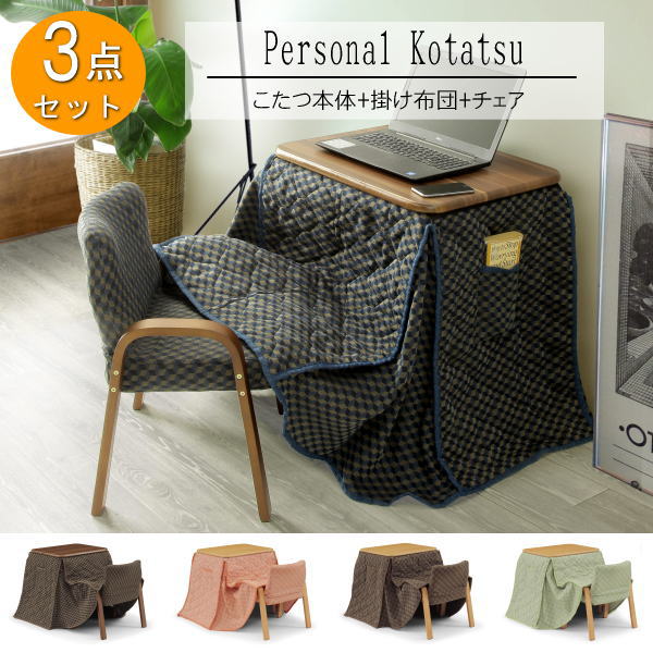 こたつ パーソナルこたつ 1人用こたつ テーブル こたつテーブル 机 布団 チェア 椅子 ダイニング 勉強机 長方形 コンパクト 3点セット 省スペース