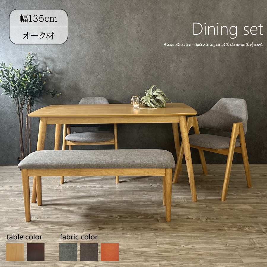 ダイニングテーブル4点セット 食卓 椅子 いす イス 4点 セット 4脚 四人用 四人掛け 無垢 木製 北欧 ベンチ ベンチチェア ベンチチェアー 長椅子