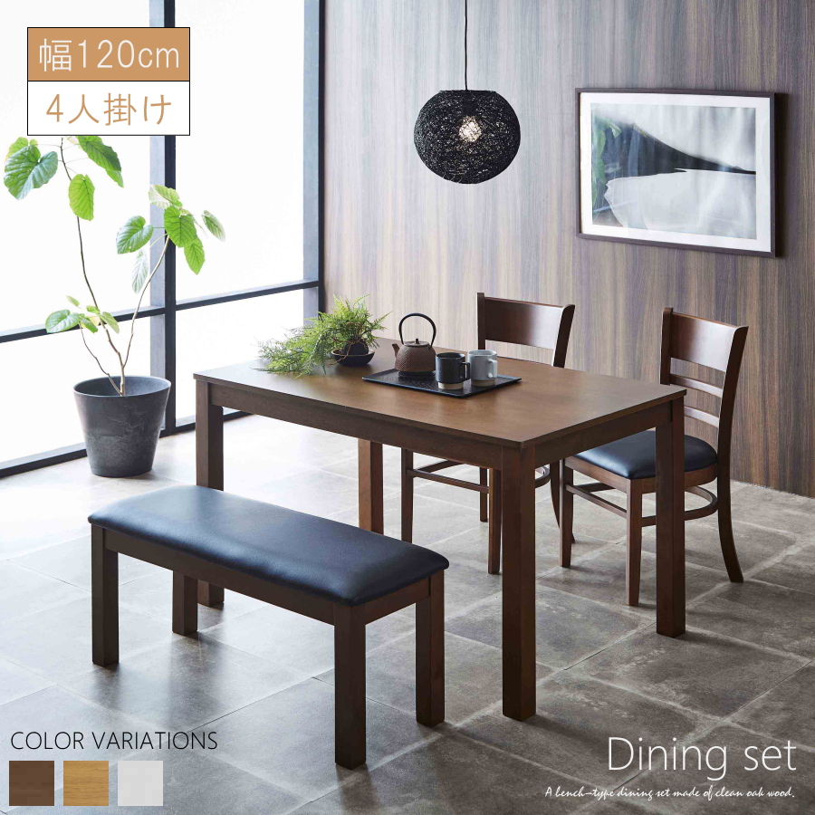 ダイニングテーブルセット ダイニングセット 4点セット ダイニングテーブル ダイニングチェアー ダイニングベンチ 4人用 オーク材 ベンチチェアー おしゃれ