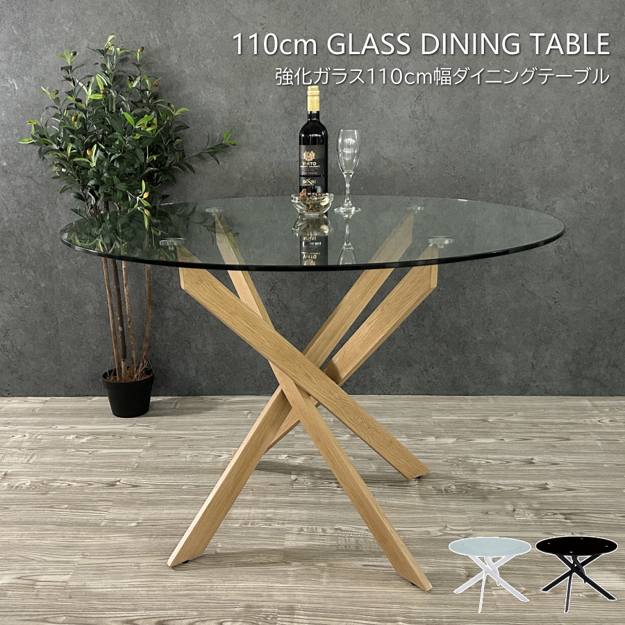 ダイニングテーブル テーブル 食卓テーブル 強化ガラス 4人用 4人掛け 円形 丸形 円型 丸型 北欧 モダン クリア ブラック ホワイト おしゃれ