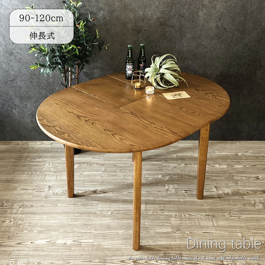 ダイニングテーブル 食卓テーブル 伸長テーブル 伸長式 90cm 120cm テーブル 食卓 2人用 4人用 おしゃれ 北欧 ナチュラル アッシュ材 エクステンションテーブル