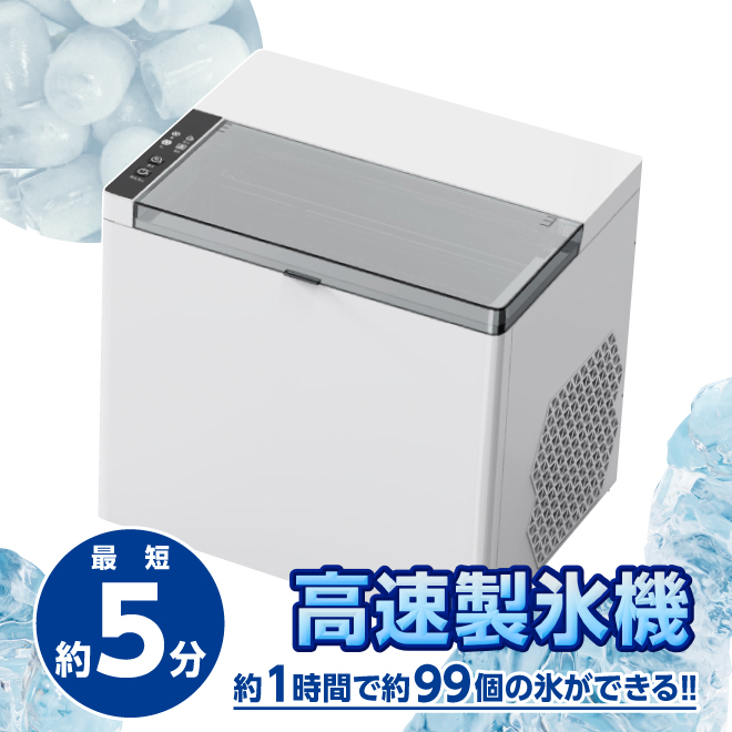 高速 製氷機 氷 最短 5分 製氷 アウトドア レジャー バーベキュー 晩酌 飲み会 休憩 残暑 酷暑 湿度 炎天下 避暑 気温 猛暑 熱中症 対策 夏のお悩み 暑さ対策