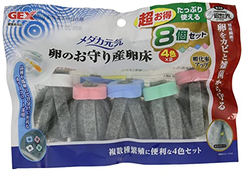 ジェックス GEX メダカ元気 卵のお守り産卵床 4色(青赤緑白) 8個入 卵のカビ発生防止 特殊繊維 卵のカビ発生防止 特殊繊維 青赤緑白8個
