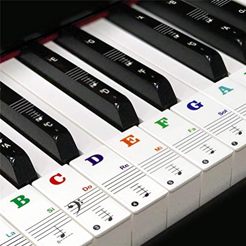 yuecheng 88/61/54/49 カラフルキー ピアノ キーボード ステッカー 音符シール 剥がせる フィンガープラクティス ガイド 透
