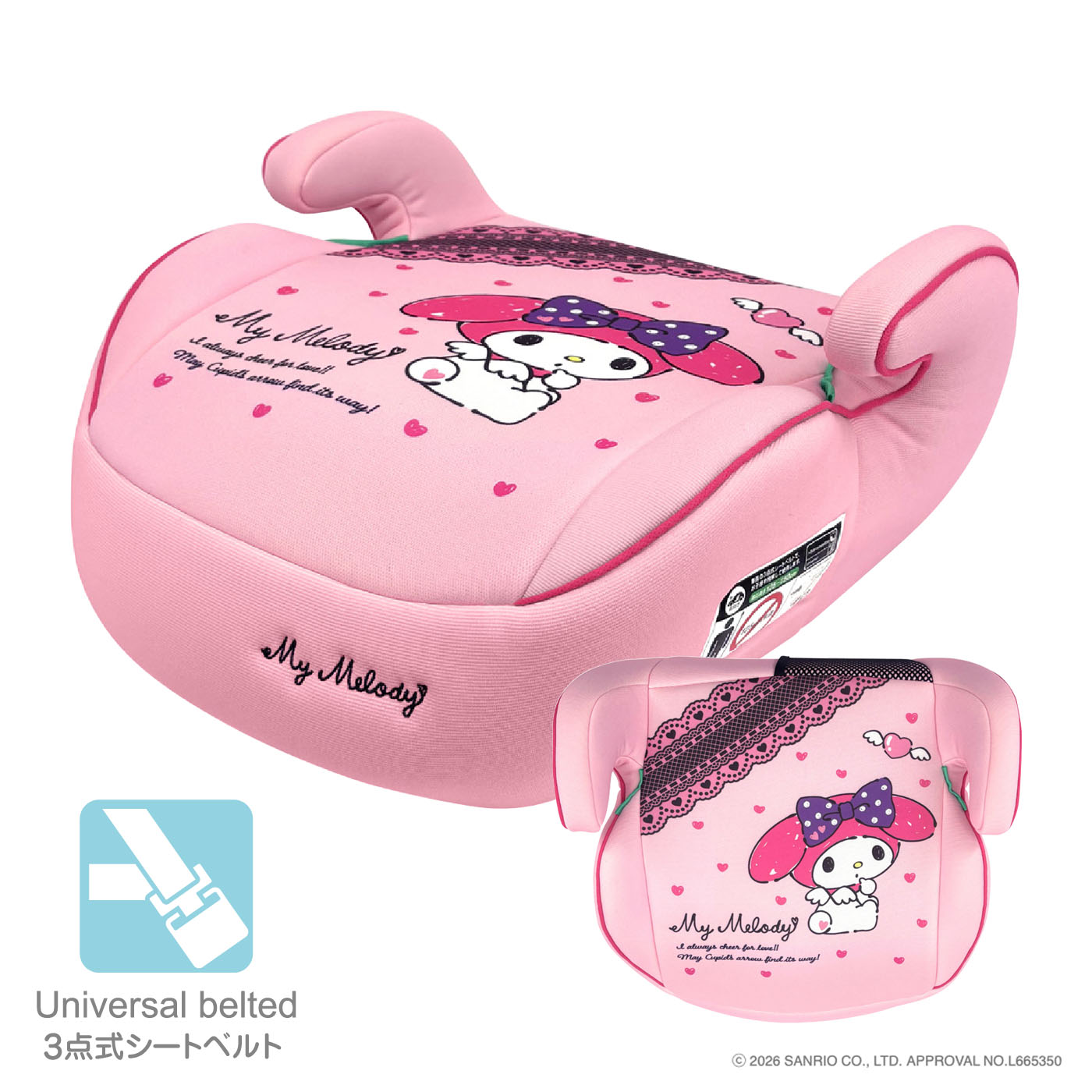 マイメロディーのデザインが、かわいいブースターシート