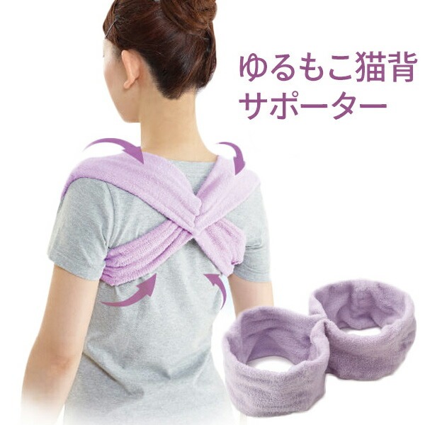 このたすき掛けを現代風にアレンジしたのが、ゆるもこ猫背サポーター。猫背で縮こまった胸の筋肉をストレッチし、逆に伸びっぱなしの背中の筋肉を緩めることで、正しく美しい姿勢へとサポートします。