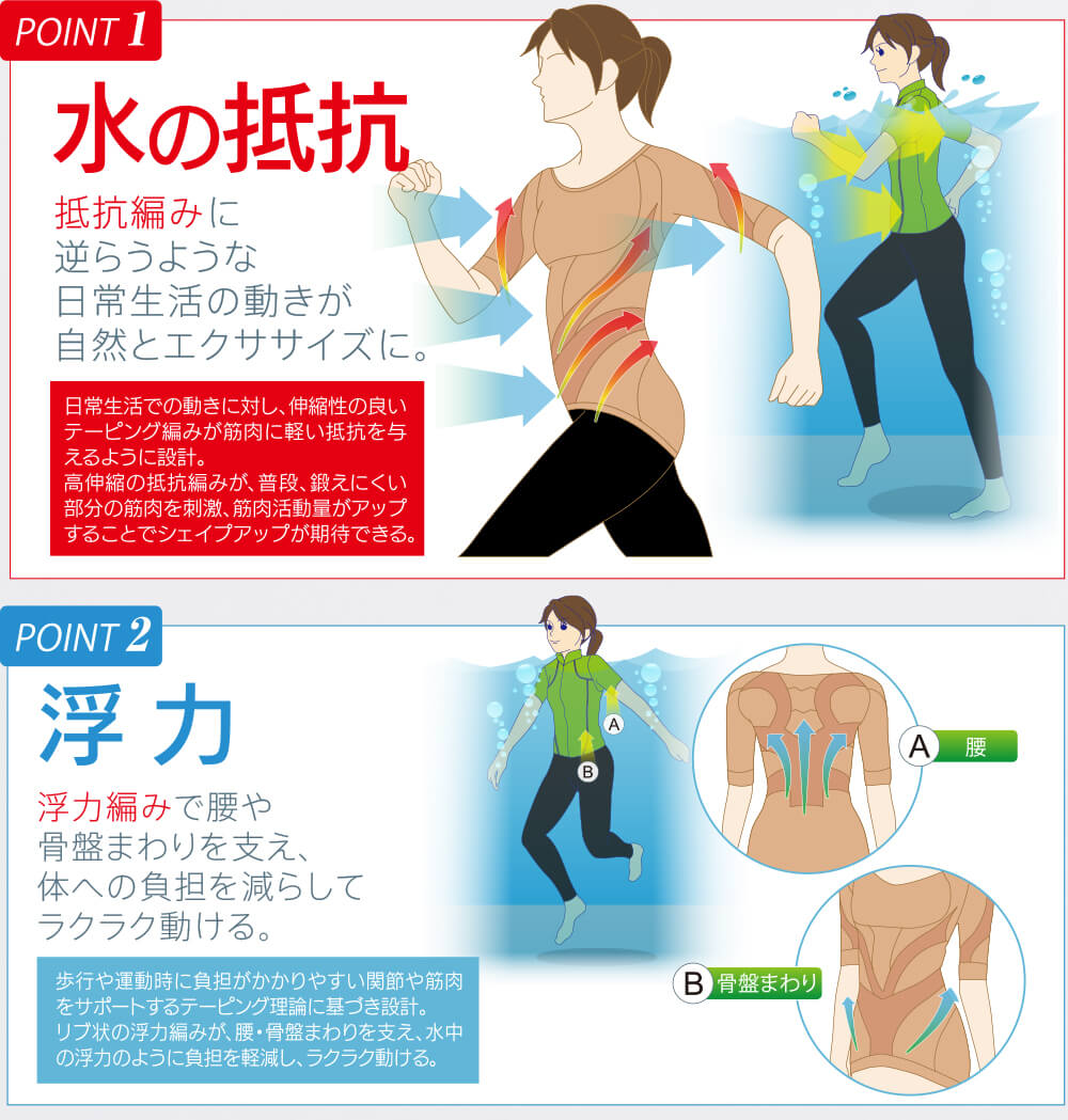 着用する事で、普段の生活が水中ウォーキングのようなエクササイズに!