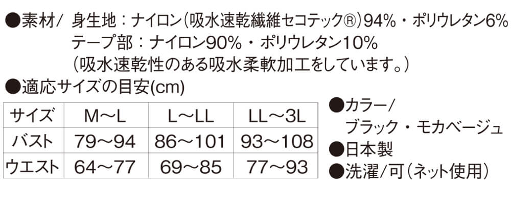 本体:ナイロン(吸水速乾繊維セコテック)94%、ポリウレタン6%