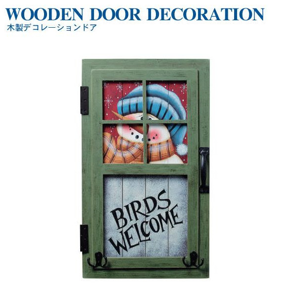 クリスマス 木製デコレーションドア グリーン WG-8845GR 友愛玩具 看板 ウェルカムプレート 玄関小物 雪だるま 飾り