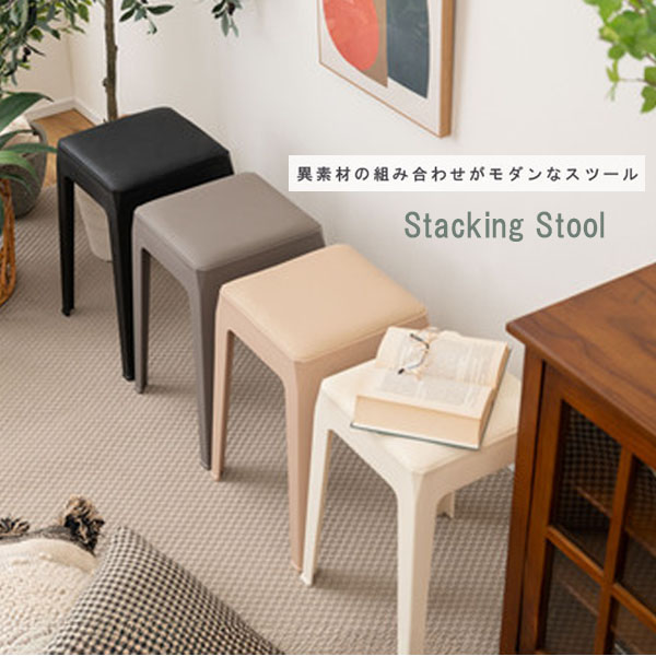 スツール 腰掛け 椅子 おしゃれ 高さ46cm スタッキング 積み重ね ニュアンスカラー 合皮座面 四角 北欧 モダン 軽量 約2kg PC-732