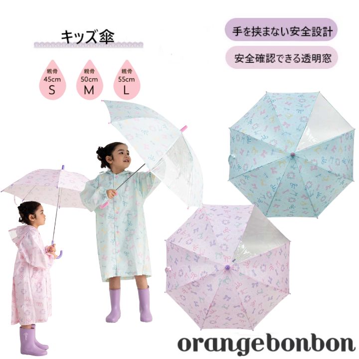 リボンバード 傘 6761603 親骨 45cm 50cm 55cm 手開き 長傘 かさ カサ ピンク 女の子 女子 子供用 雨の日 お出かけ 通園 通学 透明 おしゃれ かわいい