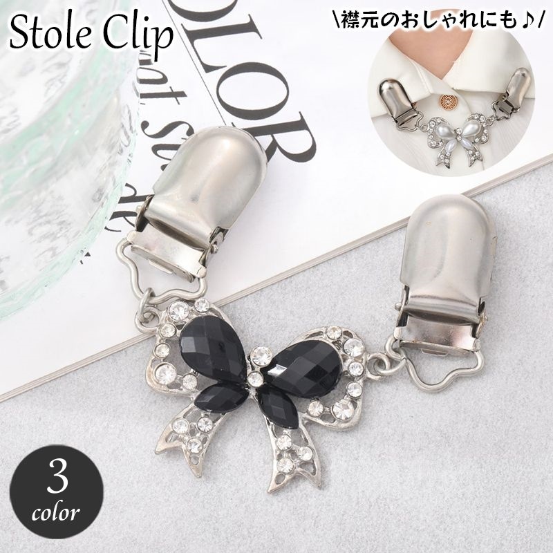 ストールクリップ ショールクリップ ストール留め カーディガンクリップ 襟クリップ レディース アクセサリー リボン ラインストーン キラキラ おしゃ
