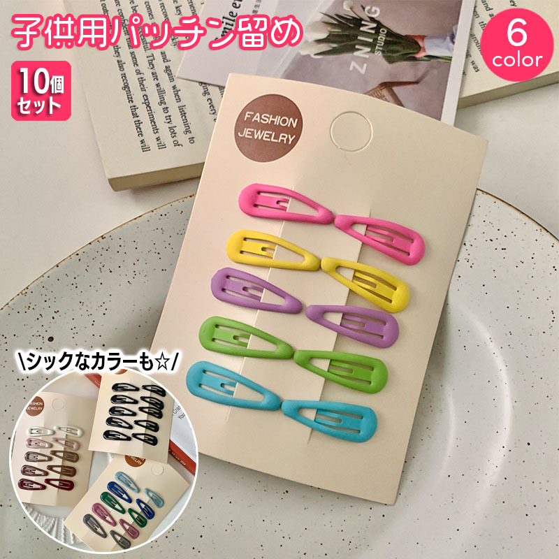 ヘアピン パッチン留め 10個セット 子供用 キッズ ベビー 女の子 レディース 女性用 シンプル 無地 単色 髪留め 髪飾り ヘアアレンジ おしゃれ