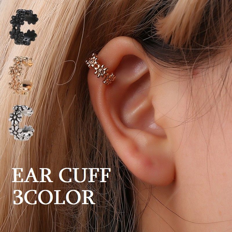 イヤーカフ イヤークリップ レディース アクセサリー 花 フラワー 可愛い ガーリー おしゃれ シンプル ゴールドカラー シルバーカラー 黒 贈り物
