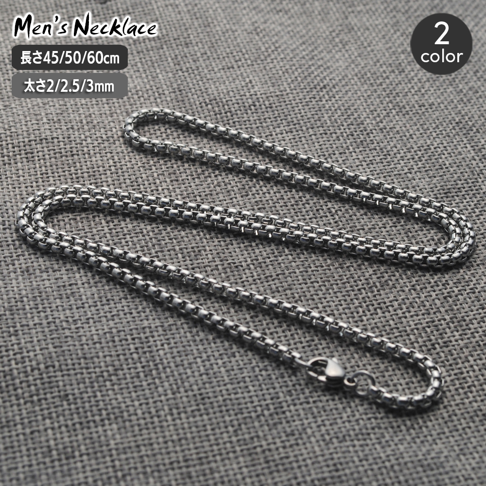 チェーンネックレス メンズ アクセサリー シンプル ベネチアンチェーン 首飾り 太さ 2mm 2.5mm 3mm 長さ 45cm 50cm 60cm