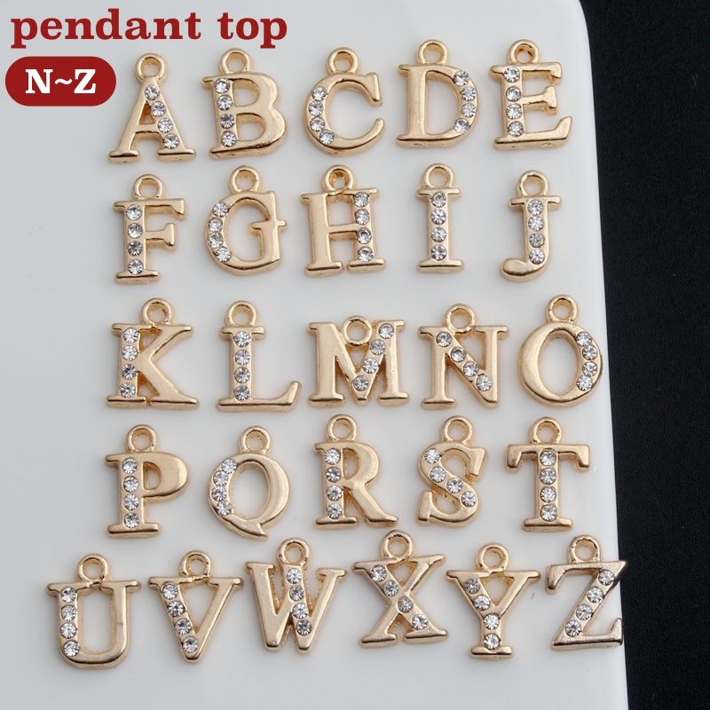 ペンダントトップ ペンダントヘッド レディース メンズ ユニセックス アクセサリーパーツ チャーム アルファベット イニシャル ラインストーン ゴール