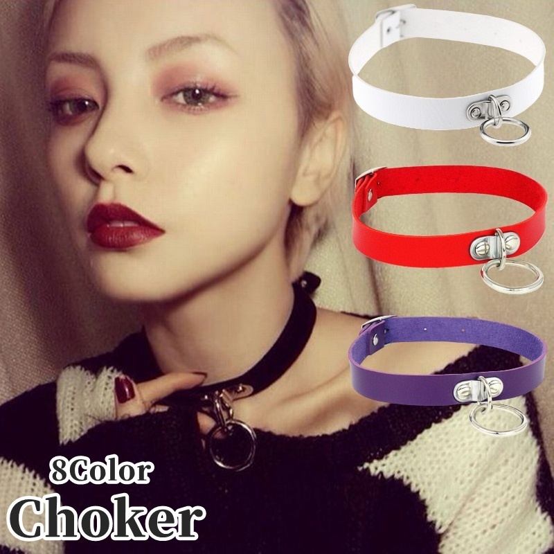 チョーカー 首飾り 首輪 レザー調 レディース 女性 アクセサリー 幅広 フェイクレザー リング付き ベルト パンク ロック かっこいい おしゃれ シ