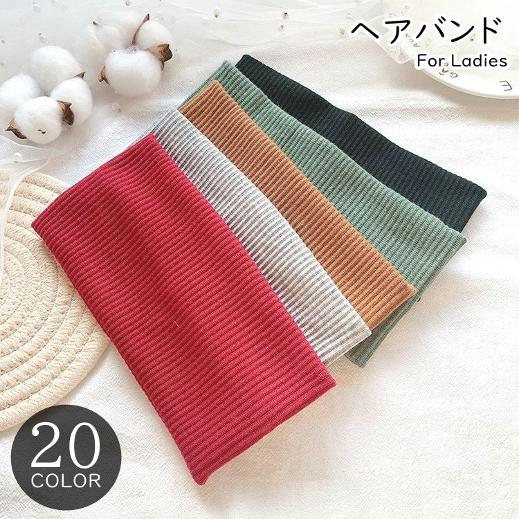 ヘアバンド ヘッドバンド レディース 女性 ヘアアクセサリー ファッション雑貨 幅広 リブ生地 無地 ブラック ホワイト カーキ ピンク シンプル フ