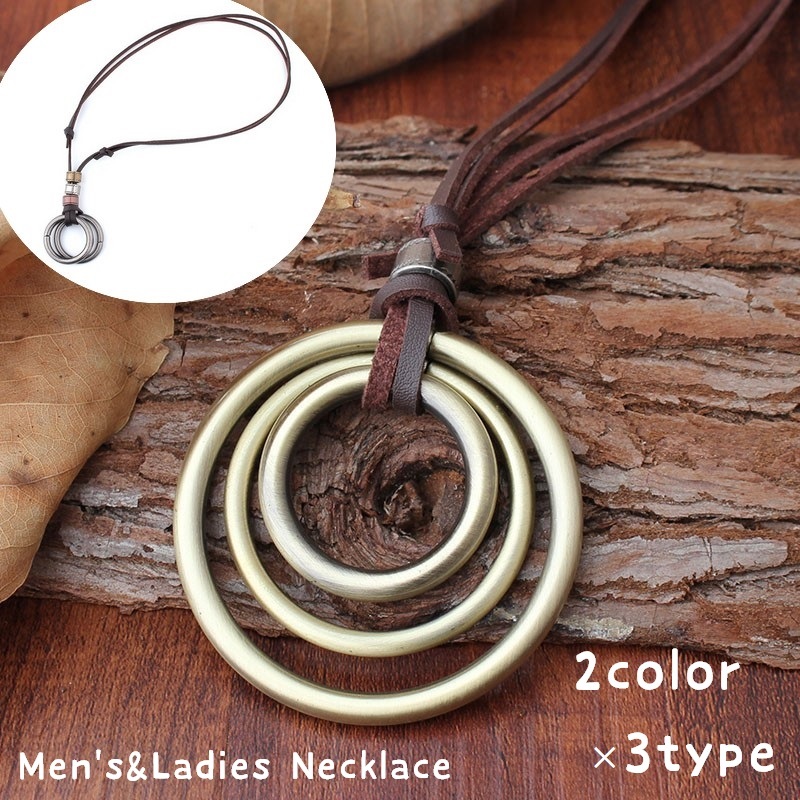 ネックレス ペンダント ロング 革ひも 革紐 首飾り メンズ レディース 男性 女性 男女兼用 アクセサリー レザー エスニック リング カジュアル