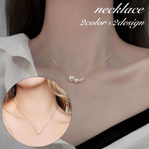 ネックレス ペンダント レディース 女性 アクセサリー フェイクパール パール調 4連 一粒 チェーン ゴールドカラー シルバーカラー おしゃれ 大人