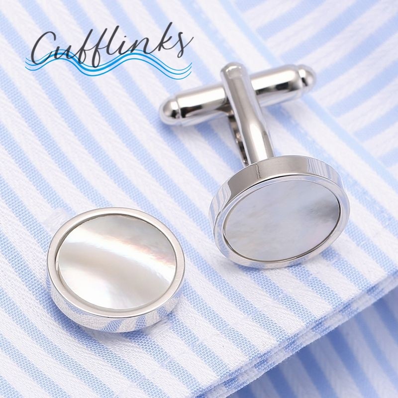 カフスボタン カフスリンクス メンズ アクセサリー スーツ シェル風 サークス 丸 ラウンド シルバーカラー ホワイト 白 パーティ ベーシック 定番