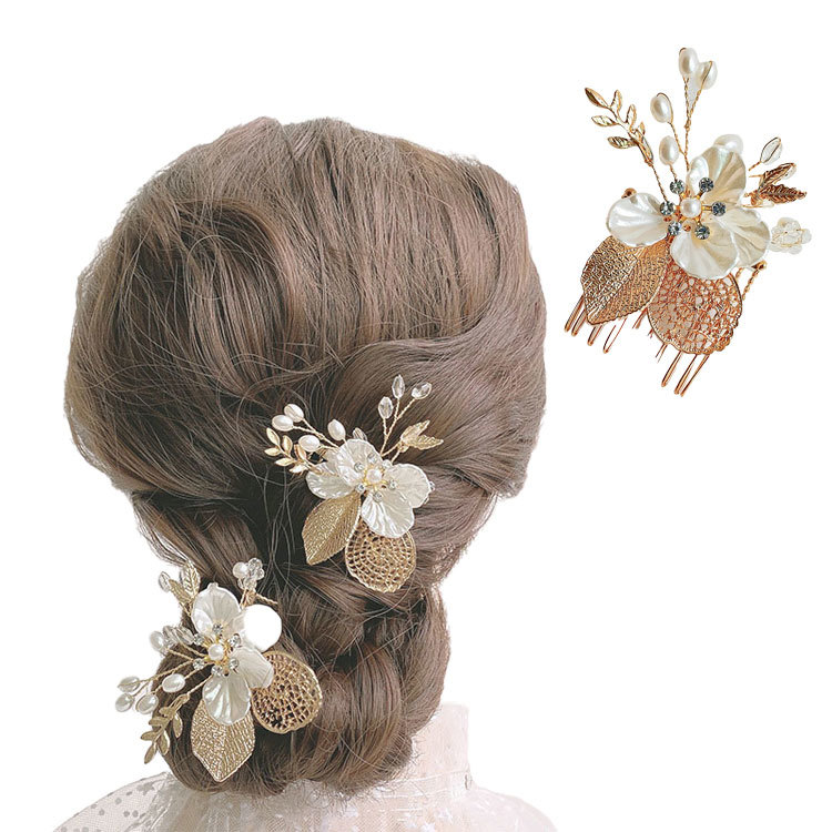 ヘアコーム レディース 女性 ヘアアクセサリー 髪飾り 髪留め かんざし 簪 フラワー 花 パール調 ラインストーン 結婚式 パーティー