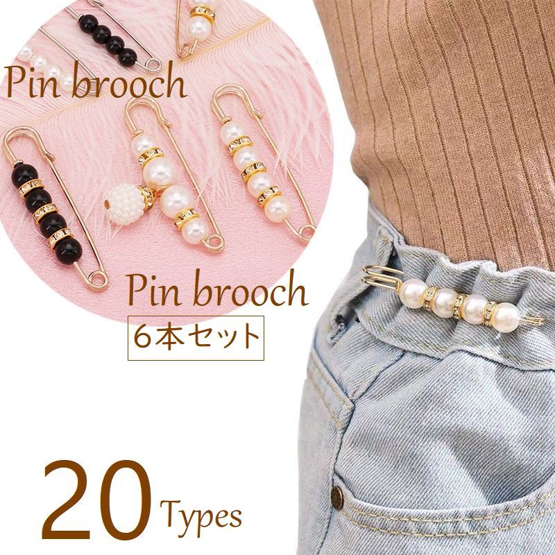 ブローチピン ウエスト調節ピン 6本セット ストールピン ビジュー付 カブトピン 安全ピン ブローチ レディース アクセサリー ショール マフラー留め