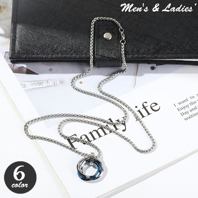 ネックレス ペンダント 男女兼用 メンズ レディース アクセサリー ダブルリング おしゃれ かっこいい カジュアル 首飾り スタイリッシュ チェーン