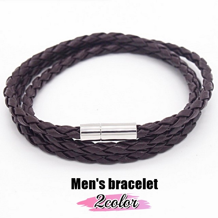 ブレスレット メンズ 男性 アクセサリー 編み紐 三連ブレスレット フェイクレザー クール かっこいい おしゃれ プレゼント ギフト ファッション雑貨