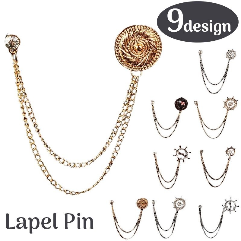 ピンブローチ ラペルピン メンズ レディース 男女兼用 アクセサリー ダブルチェーン ラインストーン 紋章 イカリ アンカー サークル 舵 きらきら