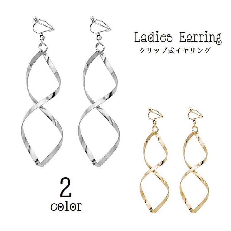 イヤリング クリップ式 レディース アクセサリー 耳飾り クロス ねじれ 揺れる ロング おしゃれ 女性用 婦人用 服飾小物 プレゼント 贈り物 誕生