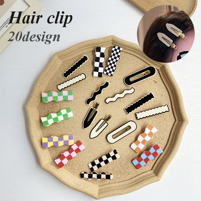 シンプルなモノトーンカラー&カラフル市松模様のヘアクリップです。