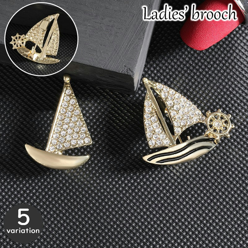 ブローチ アクセサリー ヨット 帆船 レディース ラインストーン キラキラ ワンポイント 胸元 襟元 おしゃれ かわいい ギフト プレゼント 贈り物