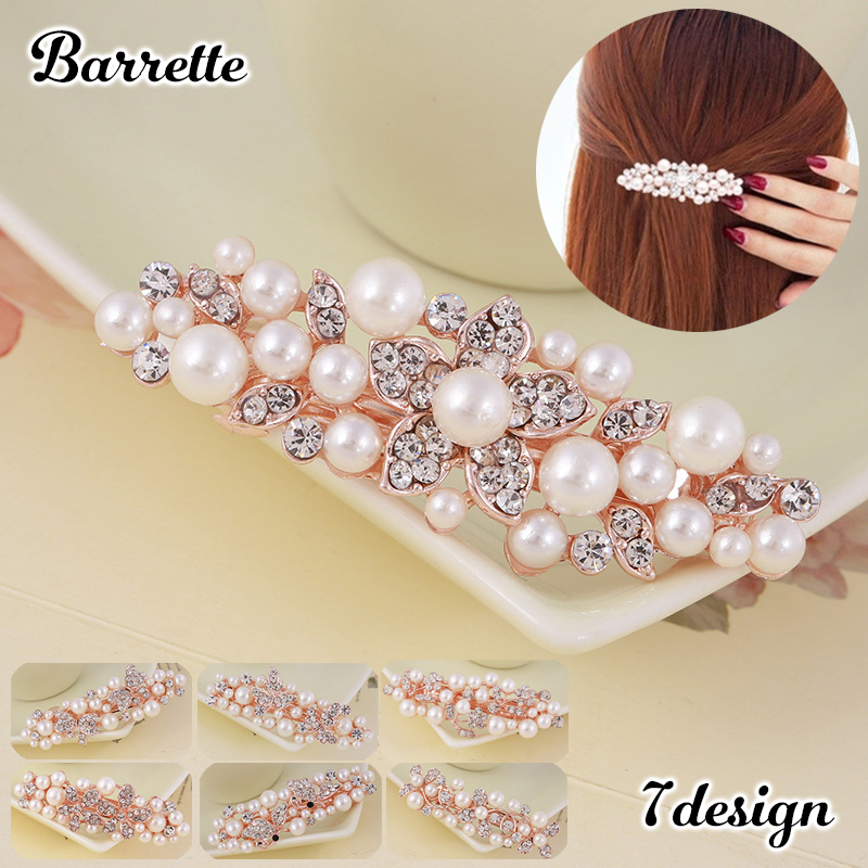 バレッタ ヘアアクセサリー レディース 女性用 髪飾り 髪留め まとめ髪 ヘアアレンジ フェイクパール ラインストーン フラワー 花 チョウ おしゃれ