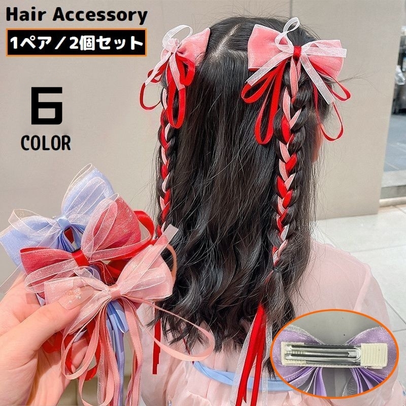 ヘアクリップ 1組 ヘアアクセサリー 子供 キッズ 女の子 髪飾り 髪留め リボン ロング 大きめ 可愛い ヘアアレンジ まとめ髪