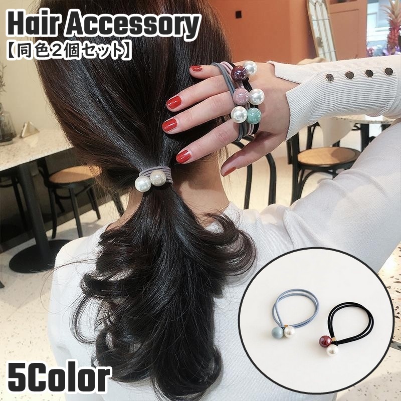 ヘアゴム 髪ゴム 同色2個セット ヘアアクセサリー レディース 女性 女子 シンプル 丸 球体 ボール 2連 髪留め まとめ髪 髪飾り ヘアアレンジ