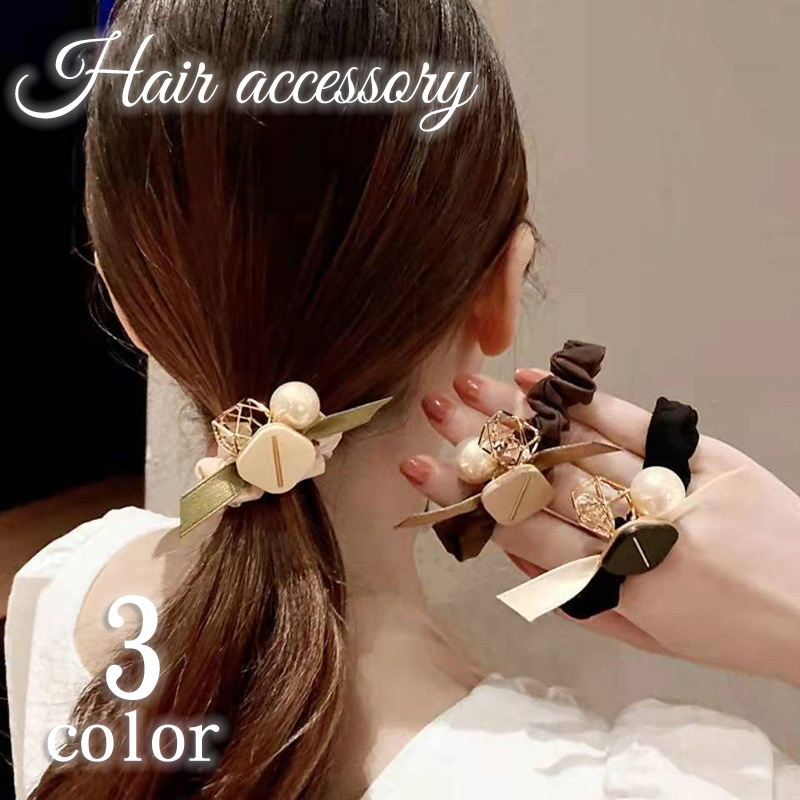 シュシュ ヘアゴム 髪ゴム レディース ヘアアクセサリー 髪飾り 髪留め フェイクパール リボン まとめ髪 ヘアアレンジ かわいい おしゃれ 上品