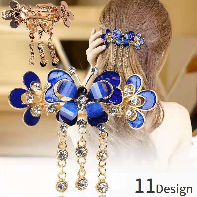 ヘアクリップ ヘアアクセサリー レディース 髪留め 髪飾り ヘアアレンジ ラインストーン 揺れる 蝶 孔雀 花 おしゃれ 可愛い かわいい まとめ髪