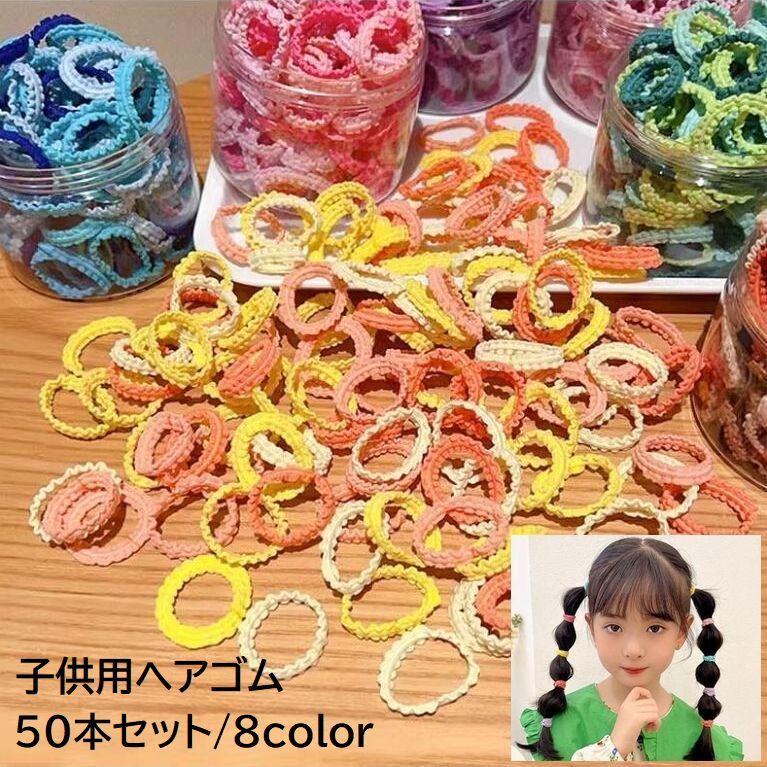 ヘアゴム 50本セット キッズ ベビー 女の子 子供用 ヘアアクセサリー 髪ゴム 髪留め まとめ髪 ヘアアレンジ まとめ買い フリル 無地 単色 カラ