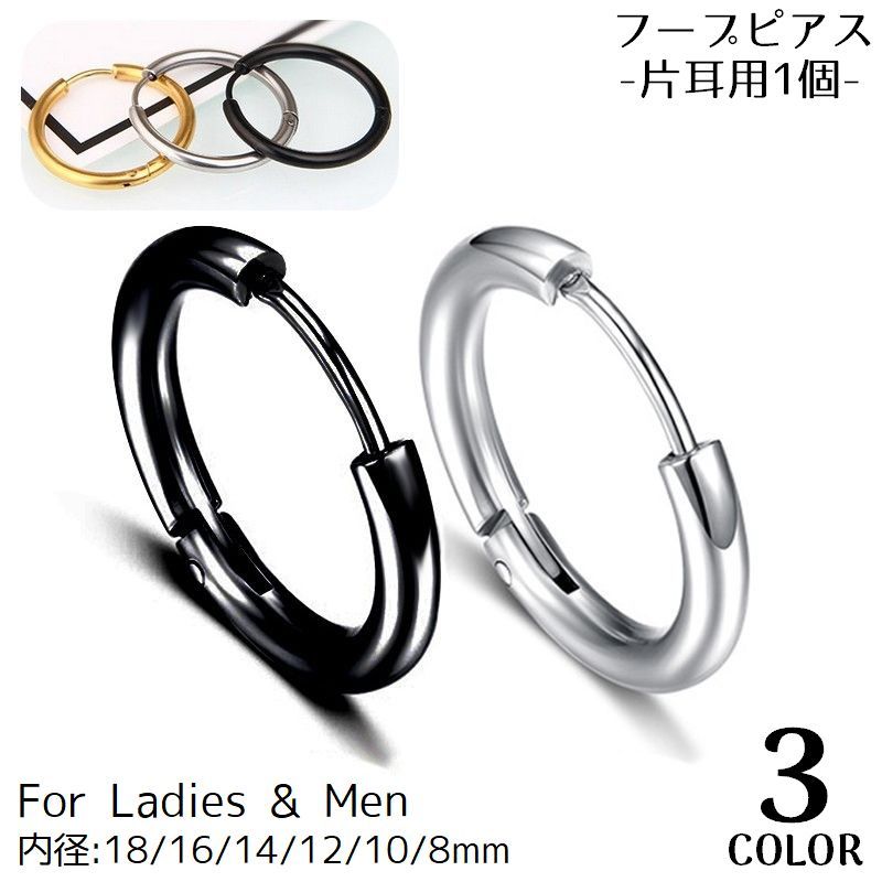 開閉式キャッチレスのフープピアス片耳用1個です。