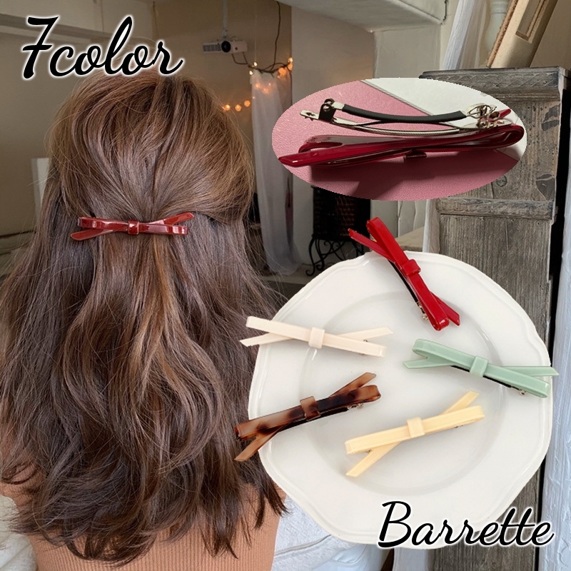 バレッタ ヘアアクセサリー レディース 髪留め 髪飾り まとめ髪 ヘアアレンジ マーブル べっ甲柄 シンプル リボン 細身 上品 大人女子 オフィス