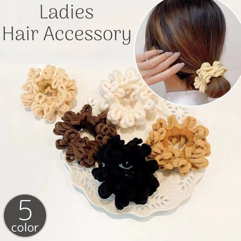 ヘアゴム 髪ゴム レディース 女性 女の子 ヘアアクセサリー 髪飾り もこもこ ふわふわ 花 まとめ髪 ヘアアレンジ かわいい おしゃれ フェミニン