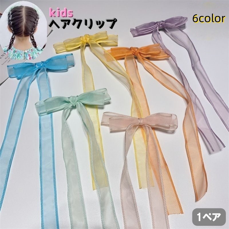 ヘアクリップ 1ペア ヘアアクセサリー キッズ 子ども 子供 女の子 女児 髪留め 髪飾り 編み込み ヘアアレンジ ロング リボン